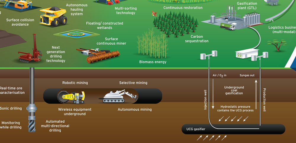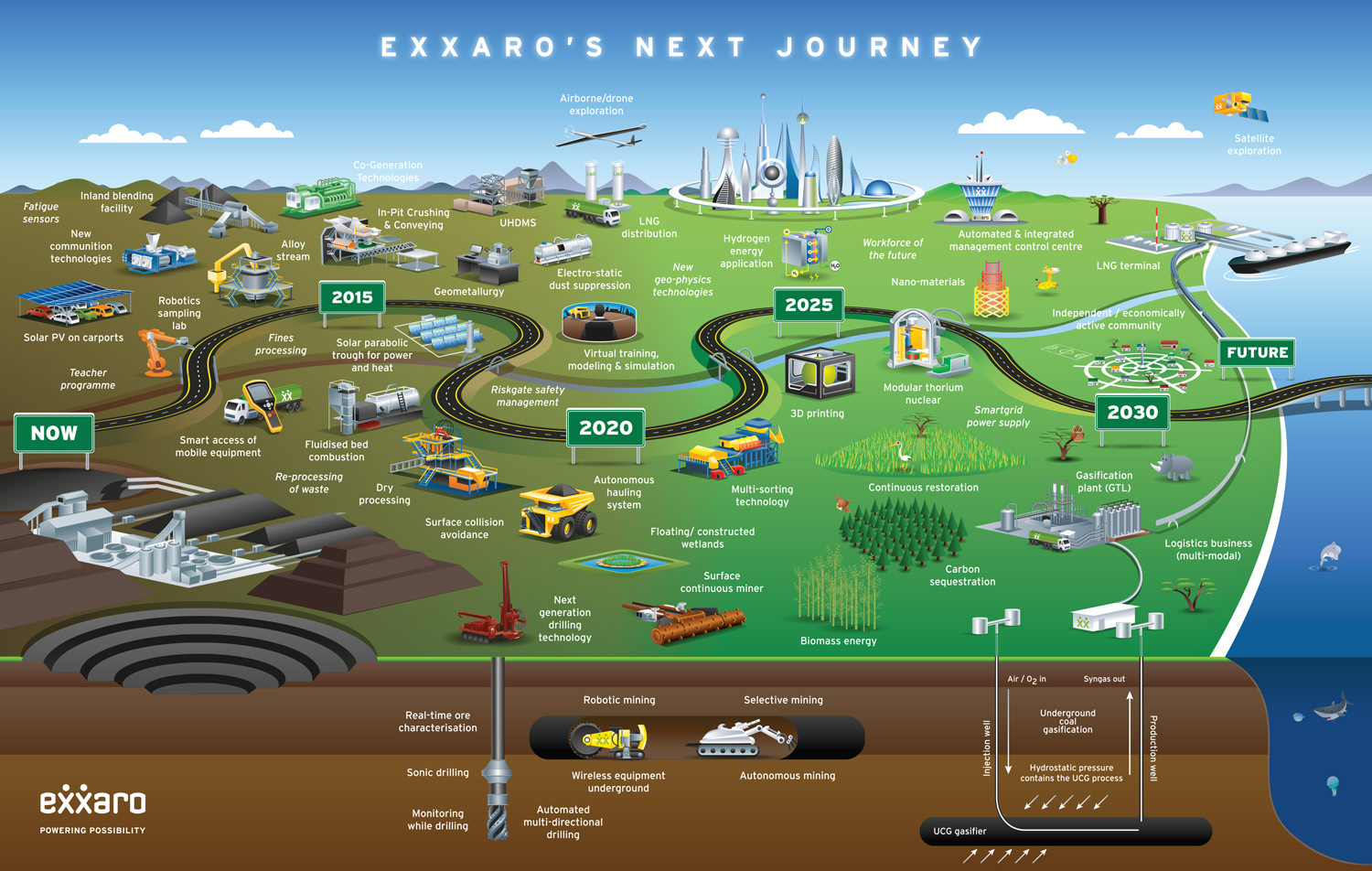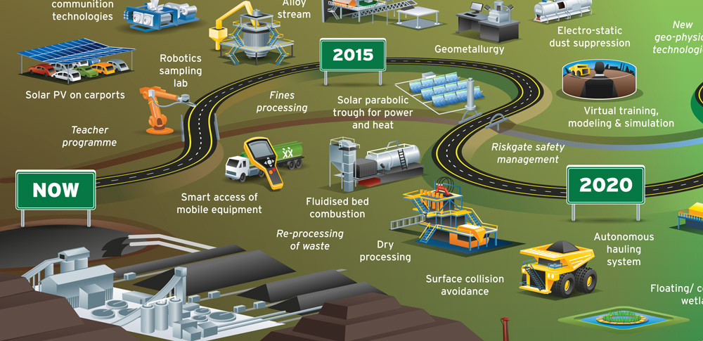 A timeline journey map exploring the landscape of mining technology heading into the future.