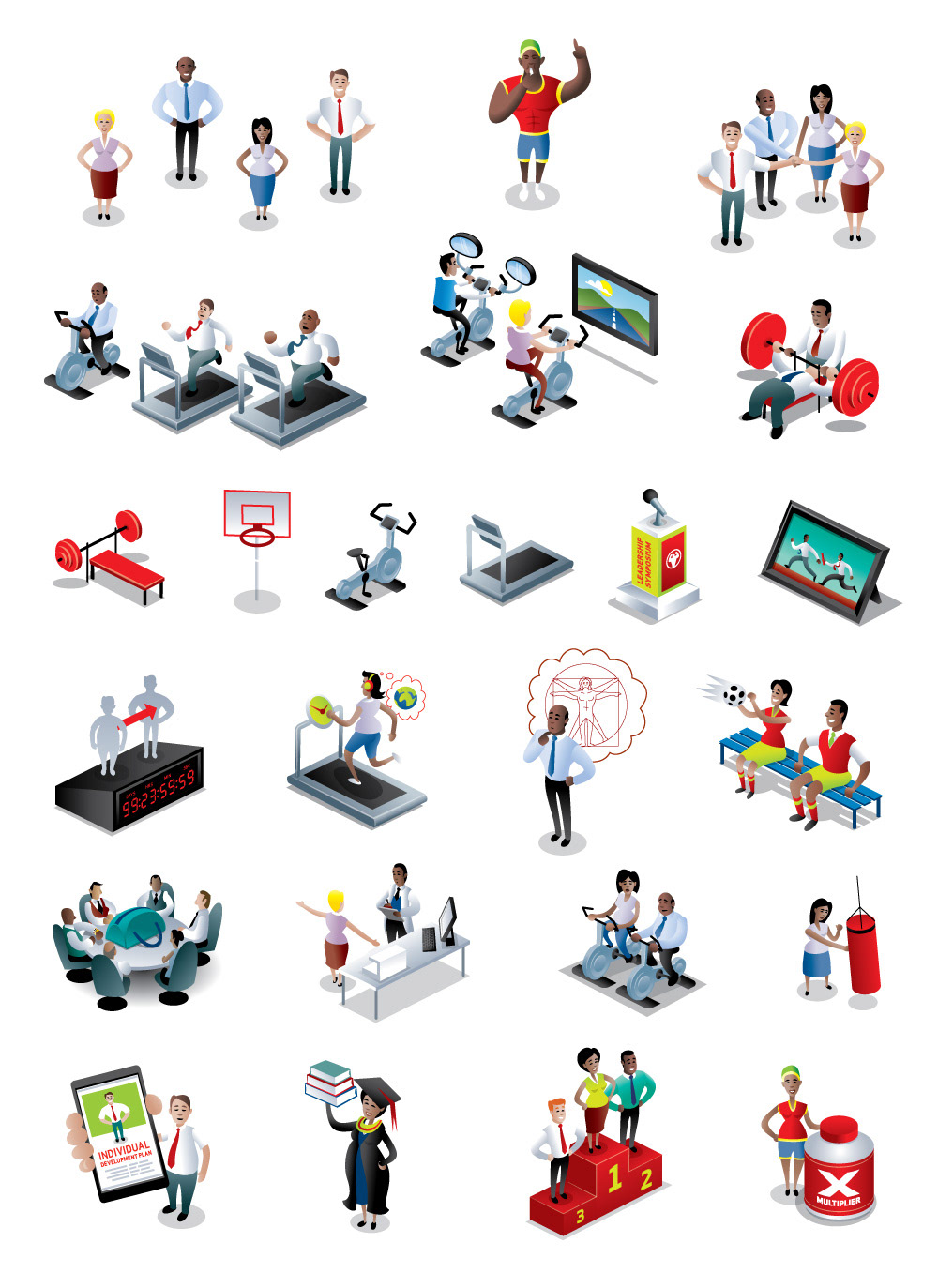 A set of images and icons illustrated for a 'leadership reshape' internal campaign, focused around improving leadership quality and building a stronger team ethic within a government owned transport company.