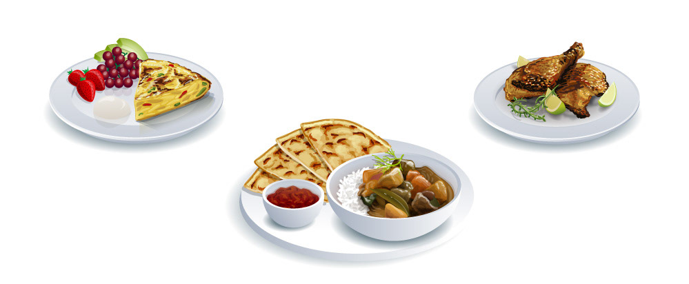 Illustrations for a Facebook game developed for a hotel chain aimed at recruiting promising young chefs.